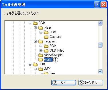 3GMの使い方->メインダイアログ->[PROPERTY]ダイアログ->[FILE]->[フォルダの参照]ダイアログ |