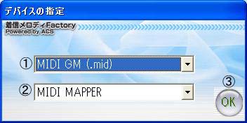 使用しているパソコンがどのMIDIデバイスを使用しているか分からない場合は、GMを選択してください。 |
