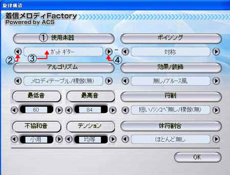 では、選択した音楽スタイルの使用楽器を設定できます。