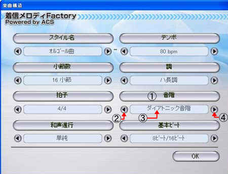 上にあります。[音階]では、以下のボタンを使用して操作を行います。