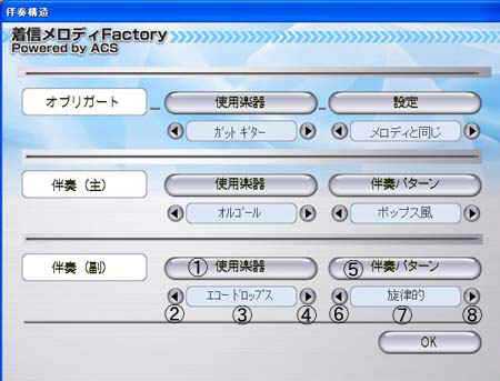 [伴奏(副)]グループでは、以下のボタンを使用して操作を行います。