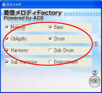 ダイアログボックスは、[音量調節]ダイアログボックスに表示するトラックを設定するためのダイアログボックスです。